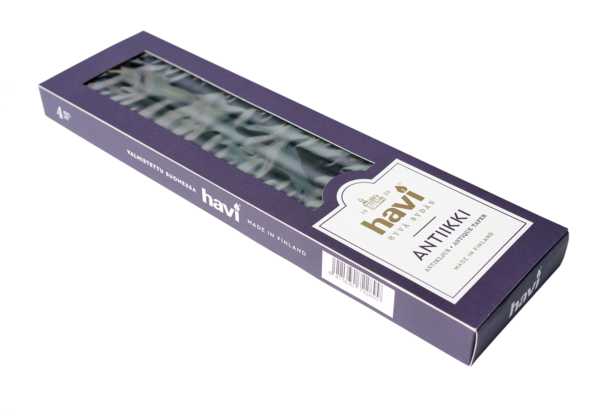 Havin antiikkikynttilä mustan värisenä. Havin antiikkikynttilät valmistetaan Riihimäellä kunnioittaen perinteistä valmistusmenetelmää.